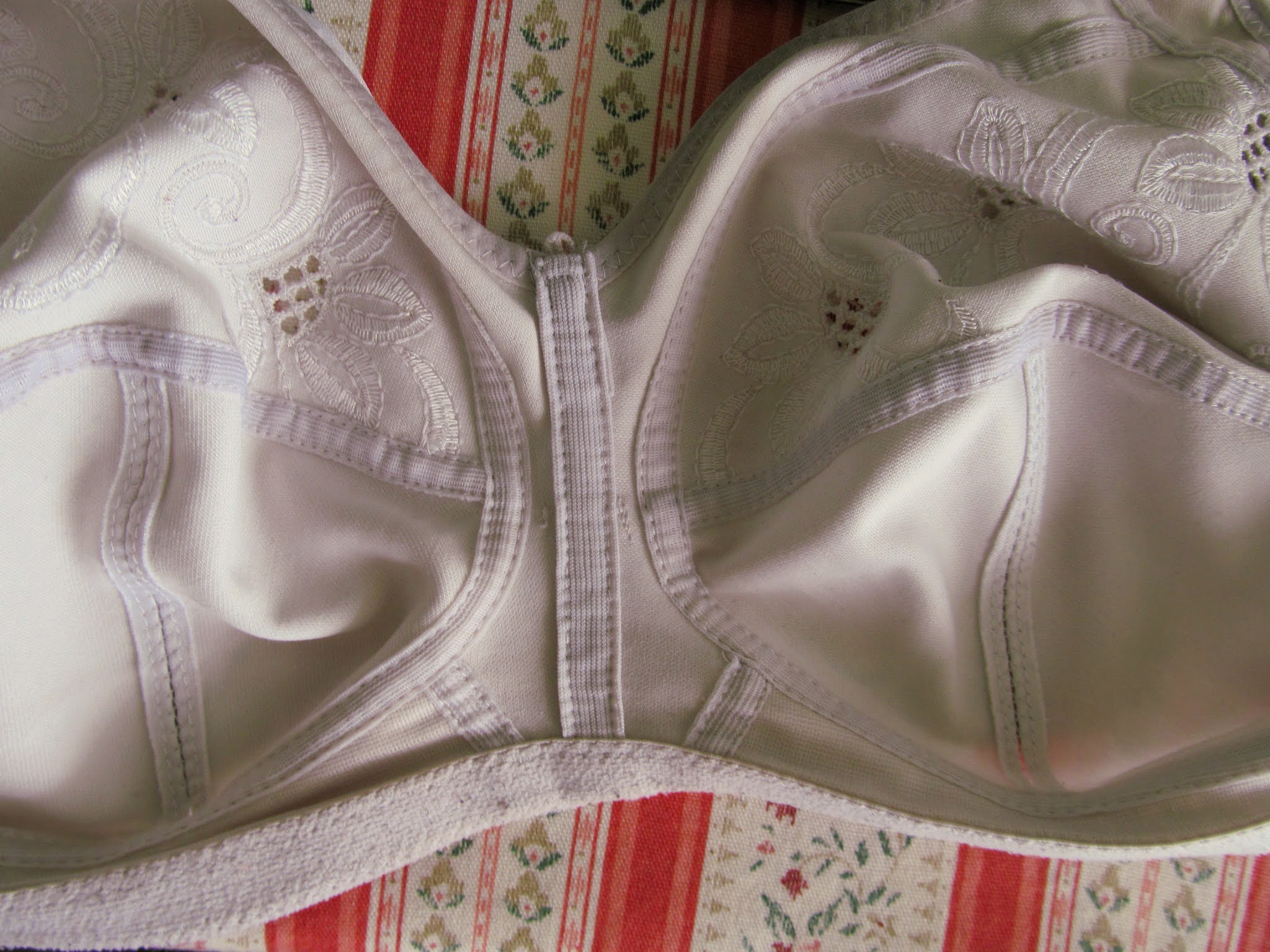 And then last year I came across this review of the Vera Venus 1940s bra and realised, over that bra's clearly fabulous support, that proper vintage-style bras might be a much better solution for me. Especially because I had been wearing exclusively wireless in RTW bras for the past couple of years anyway and my absolute favourite, fit-wise (sadly not material-wise), was this rather vintage-style number from Marks & Spencer.